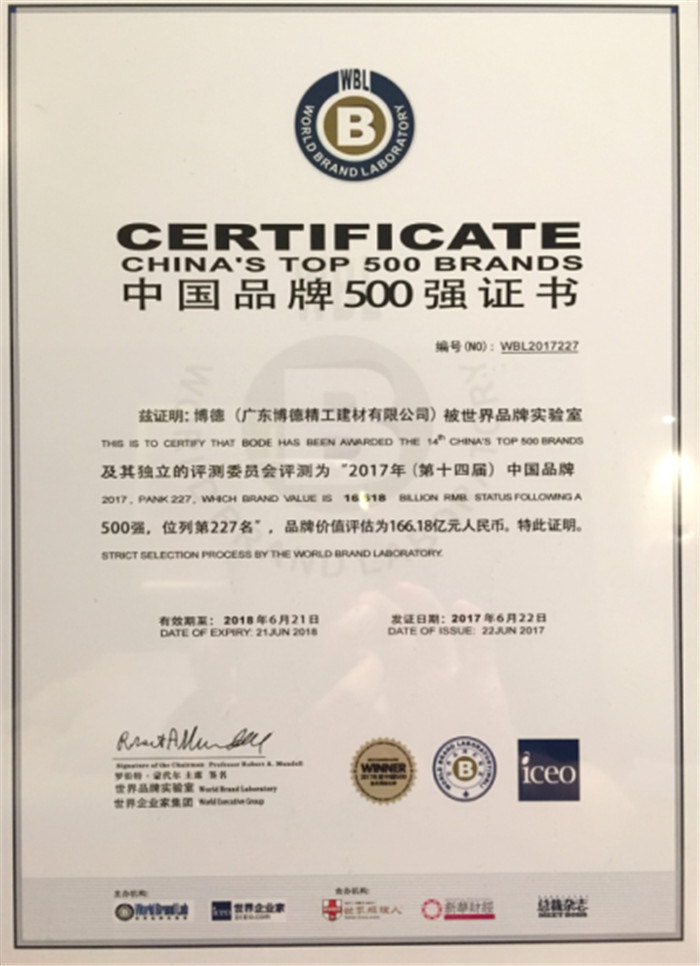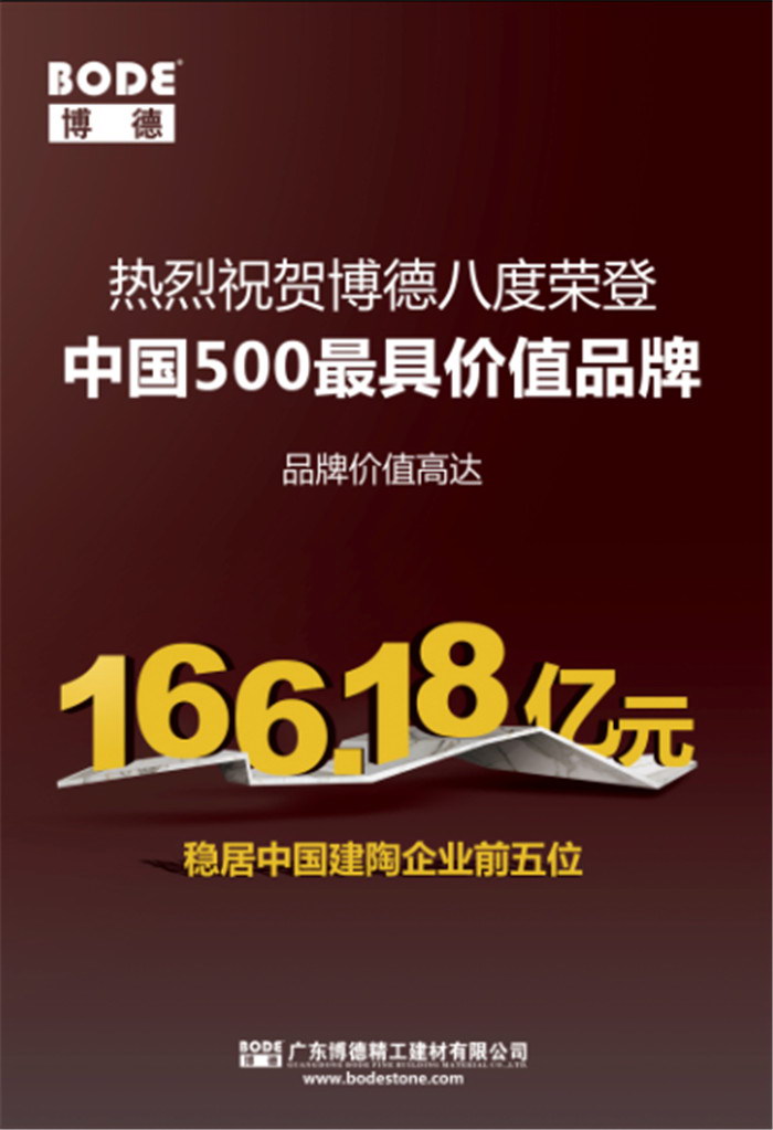 由世界品牌实验室(World Brand Lab)主办的第十四届“世界品牌大会”于6月22日在北京隆重举行,会上发布了2017年《中国500最具价值品牌》排行榜。广东花季传媒APP下载免费观看大全精工建材有限公司旗下“花季传媒APP下载免费观看大全”品牌八度荣登该榜单,品牌价值高达166.18亿元,在陶瓷行业排名中稳居前5位;大会授予花季传媒APP下载免费观看大全公司“中国品牌500强”证书。